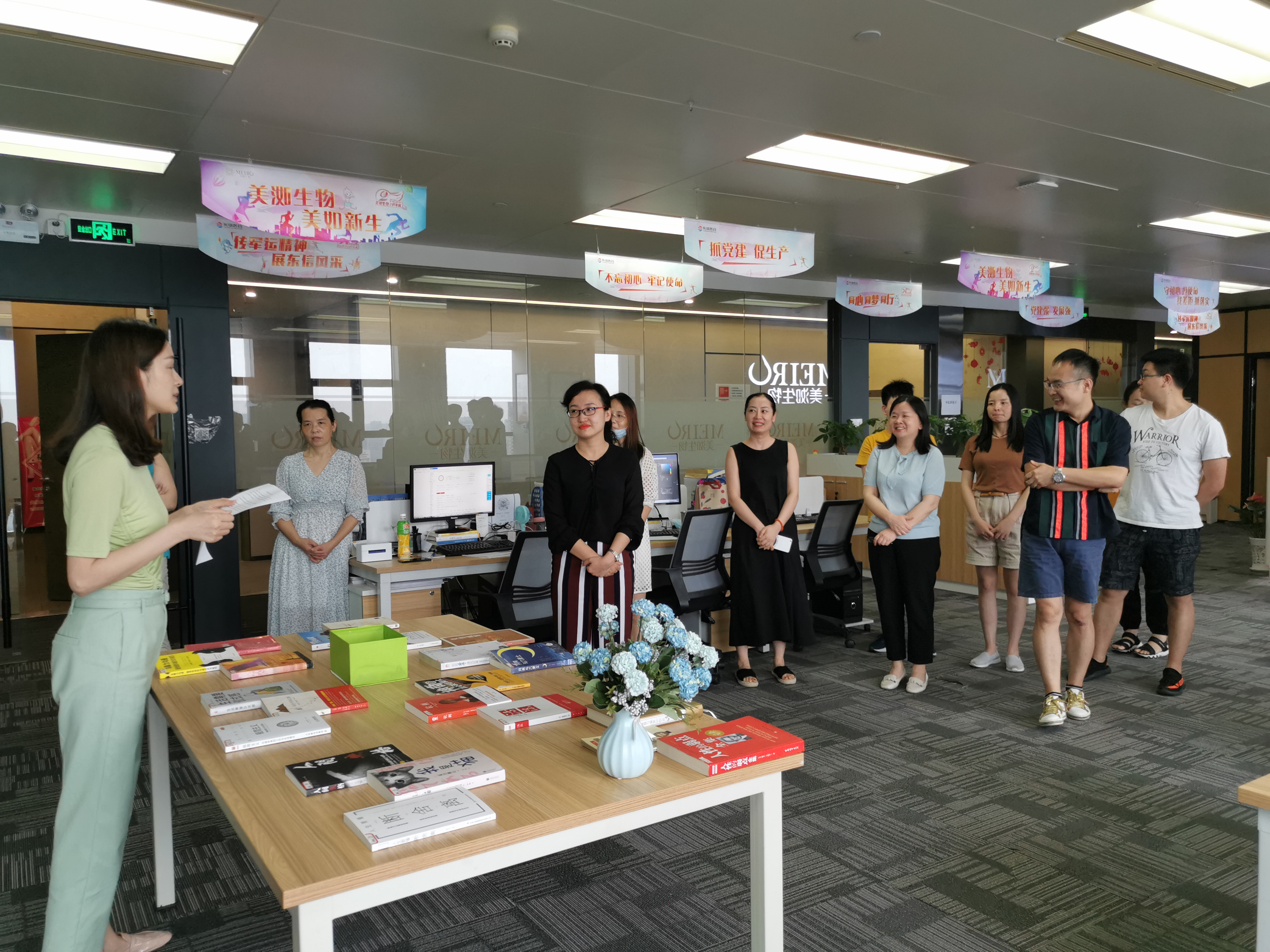 美洳生物科技的書籍交換活動特別有儀式感,每位贈與者都上臺對贈送的書籍做了詳細介紹,并親手將書贈送給受書者,希望受書者能喜歡和珍愛這本書。