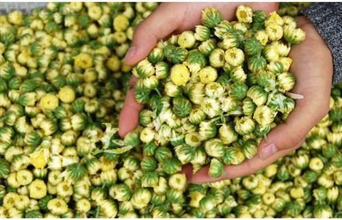 胎菊古時曾作貢品,其真品干花形態(tài)整齊,花瓣內(nèi)斂蜷曲,色澤金黃,花蜜味香甜濃郁,花蕾全部開放后采摘下來的就是杭白菊。