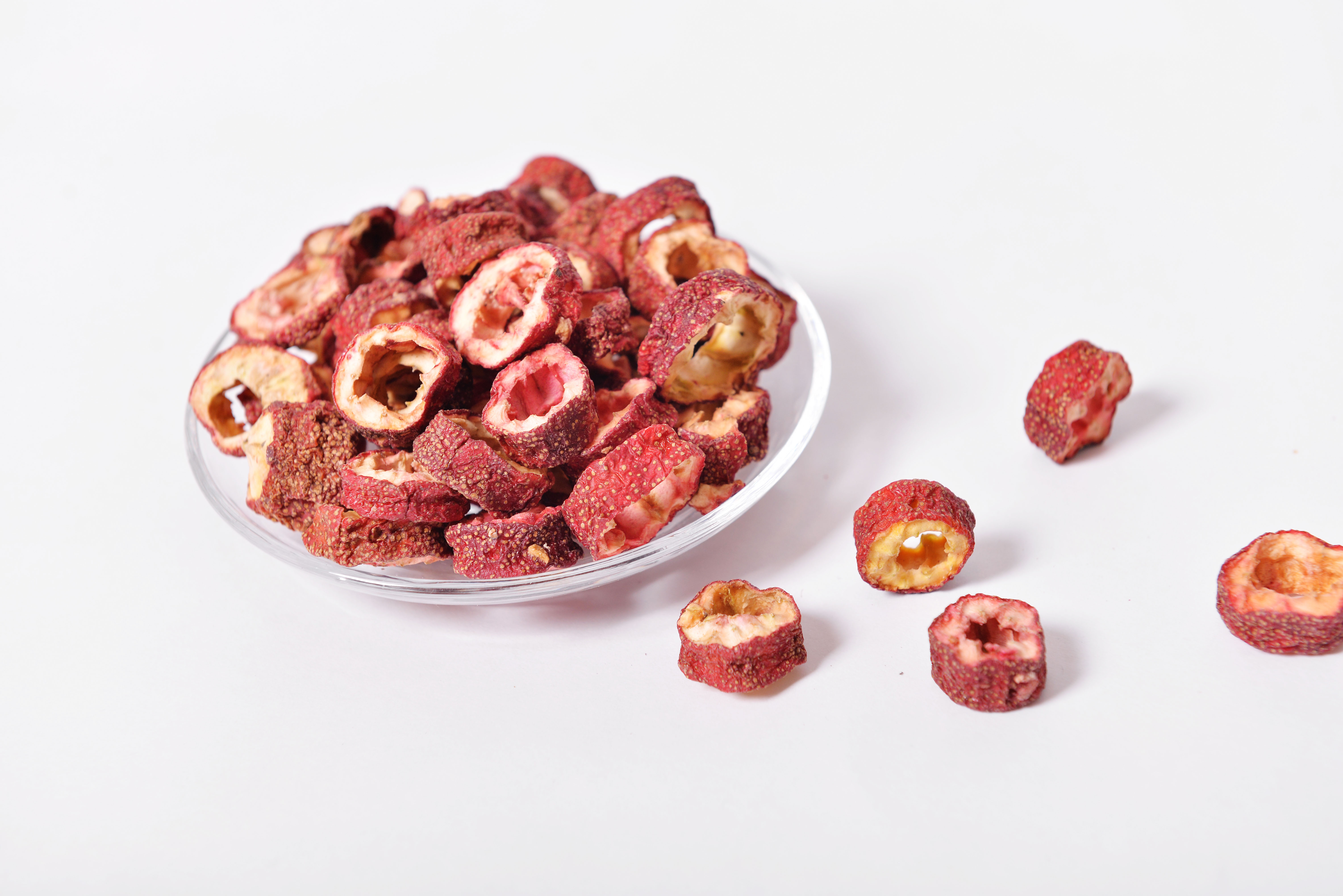 山楂,為薔薇科山楂屬植物山里紅或山楂的干燥成熟果實。性微溫,味酸甘,入脾、胃、肝經(jīng)。