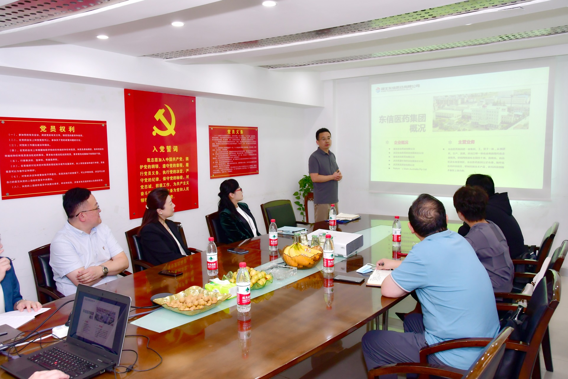 在會(huì)議室,程波濤秘書長(zhǎng)一行觀看了東信醫(yī)藥集團(tuán)的企業(yè)宣傳片。隨后,東信醫(yī)藥銷售部OTC部長(zhǎng)宋于祥向與會(huì)人員詳細(xì)介紹了東信醫(yī)藥集團(tuán)的產(chǎn)業(yè)布局及發(fā)展規(guī)劃。東信醫(yī)藥常務(wù)副總經(jīng)理李建軍對(duì)湖北省醫(yī)藥行業(yè)協(xié)會(huì)給予的支持表示感謝,并請(qǐng)協(xié)會(huì)領(lǐng)導(dǎo)對(duì)企業(yè)的發(fā)展提出指導(dǎo)性意見。