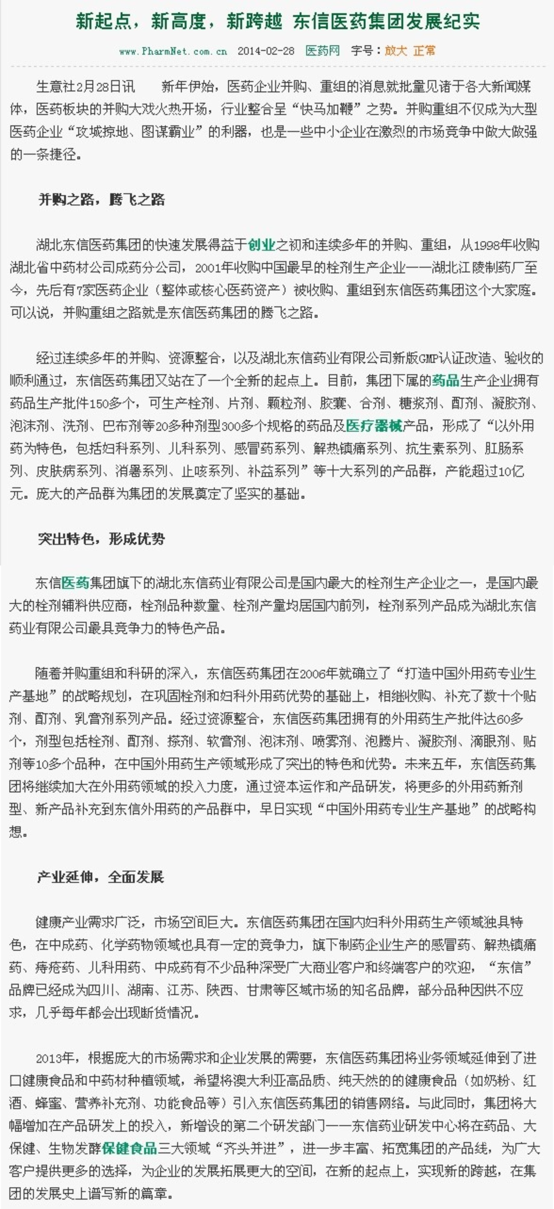 媒體報道:東信醫(yī)藥集團(tuán)發(fā)展紀(jì)實(shí)