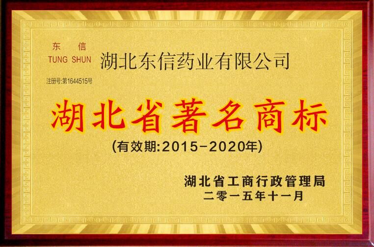 2015年11月,湖北東信藥業(yè)有限公司注冊并使用在醫(yī)藥制劑、人用藥、栓劑上的“東信”商標(biāo)再次被湖北省工商行政管理局認(rèn)定為湖北省著名商標(biāo)。東信商標(biāo)被廣泛用于婦科藥和兒童藥,因其質(zhì)優(yōu)價廉、見效快、療效好、副作用小等優(yōu)點(diǎn),深受廣大患者喜愛。