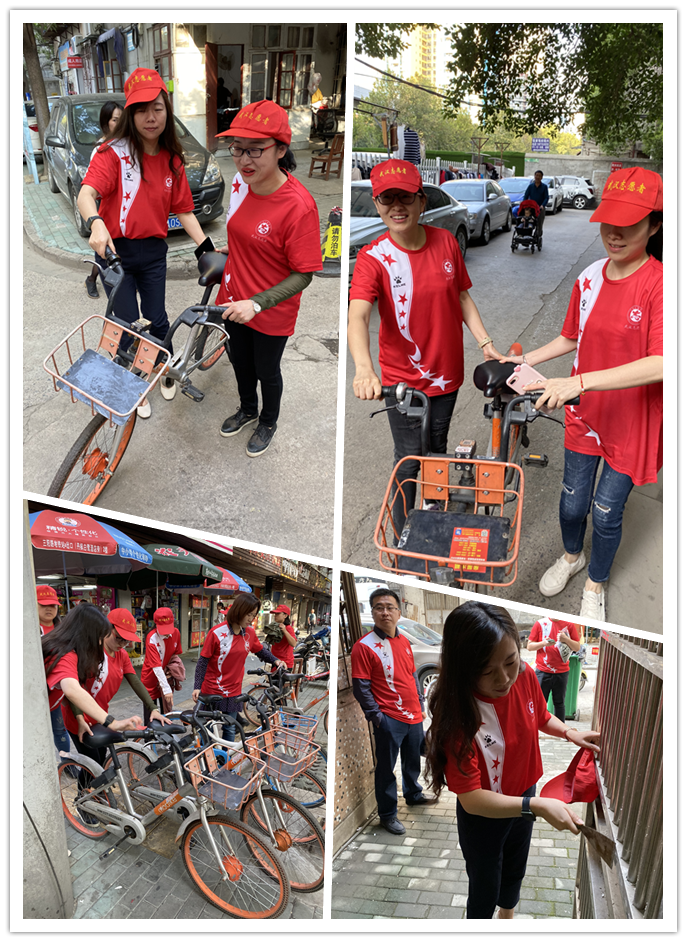 志愿者們?cè)谏鐓^(qū)工作人員的帶領(lǐng)下,沿著中山大道、麟趾路、京漢大道規(guī)整共享單車(chē),鏟除小廣告,清掃雨陽(yáng)棚,街道和社區(qū)在他們的規(guī)整和打掃下煥然一新。