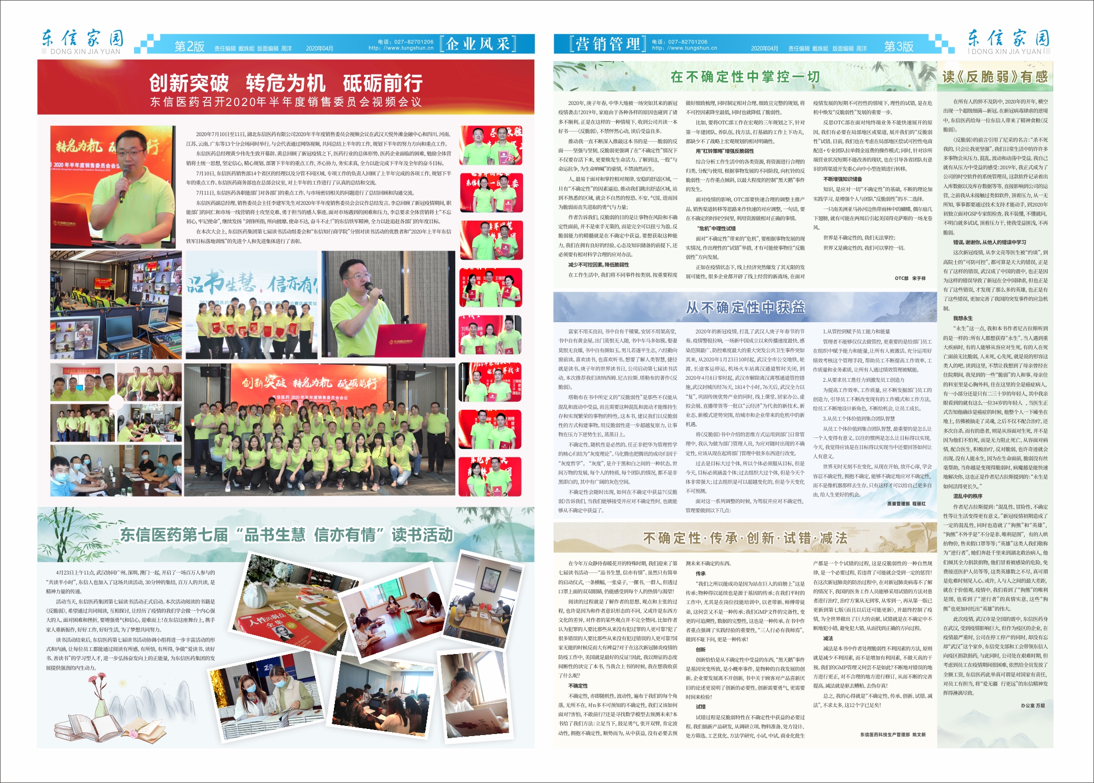 當(dāng)天,東信醫(yī)藥集團(tuán)第七屆讀書活動(dòng)正式啟動(dòng),本次活動(dòng)我們選擇的書籍是《反脆弱》,希望通過共同閱讀,互相探討,讓經(jīng)歷了疫情的我們學(xué)會(huì)做一個(gè)內(nèi)心強(qiáng)大的人。面對(duì)困難和挫折,要增強(qiáng)勇氣和信心,迎難而上!在東信這座舞臺(tái)上,攜手家人重新振作,好好工作,好好生活,為了夢(mèng)想共同努力。